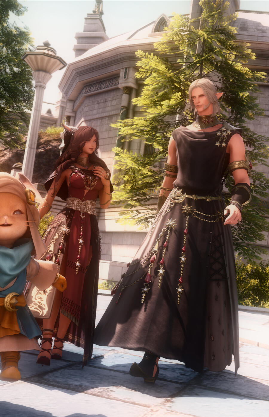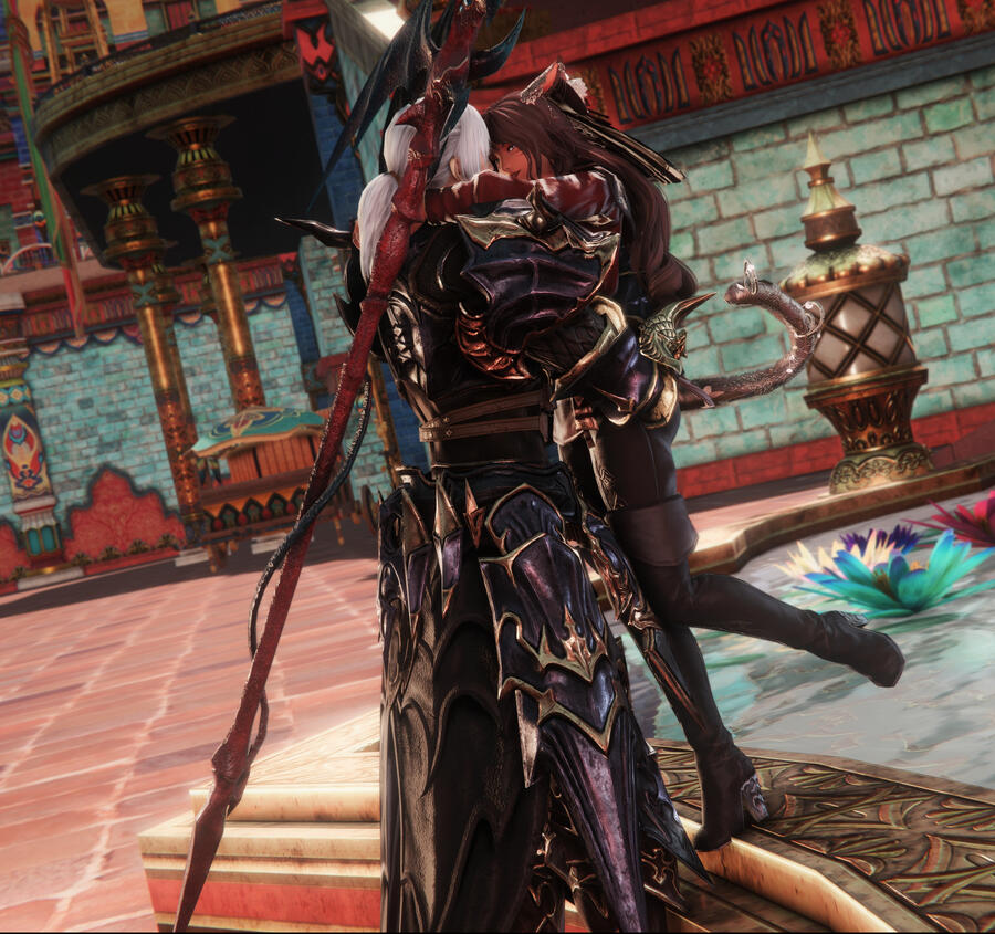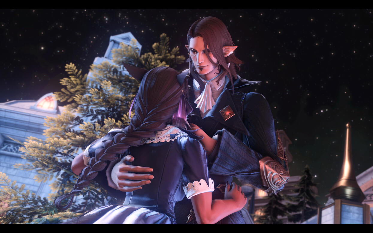 How long had it been that they'd walked this path. Out of sight, but both on to the same end unknown since the beginning. From children feasting upon tomes for bells on end, to near strangers fully bloomed giving greetings in the waking sands. It was nearly comical their fate, and she surmised that not even the elezen's cards could have foretold their outcome. It was no easy barrier to break, especially when they both had one party in mind hindering their union. Though it was with long talks, a brush with death, and some coaxing from Thancred that the two hesitant lovers finally began to see each other. Timid love, gentle as the way they clasped their hands together with their first steps. Slowly over time the humble garden of their love flourished an changed along with themselves.